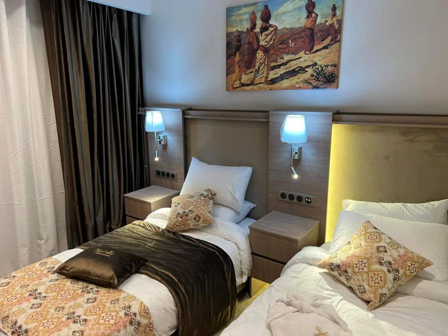 كما قام السيد الوزير بمعاينة المؤسستان الفندقيتين عمراوة و لالا خديجة بمدينة تيزي وزو و الوقوف على مدى تقدم الاشغال بالمشروعين وأهم العمليات المنجزة والتي هي في طور التجسيد.