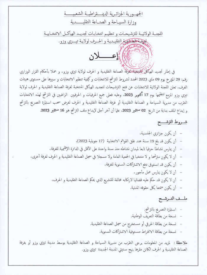 - تجديد الهياكل المنتخبة لغرفة الصناعة التقليدية و الحرف لولاية تيزي وزو